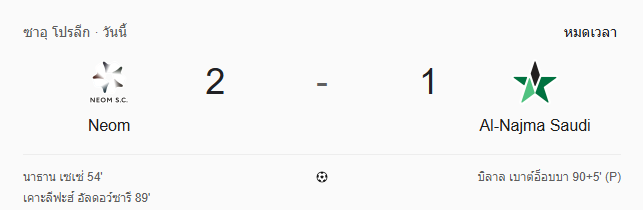 ผลบอลสด ซาอุดิ โปรเฟสชั่นแนล ลีก ระหว่าง เนออม vs อัลนาจม่า (ซาอุฯ) วันนี้ 26/12/68 ดูบอลย้อนหลัง คลิปไฮไลท์ ดูบอล ซาอุดิ โปรเฟสชั่นแนล ลีก