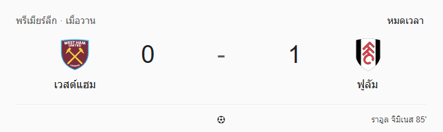 - หมดเวลา: เวสต์แฮม 0-1 ฟูแล่ม