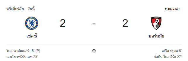 - หมดเวลา: เชลซี 2-2 บอร์นมัธ