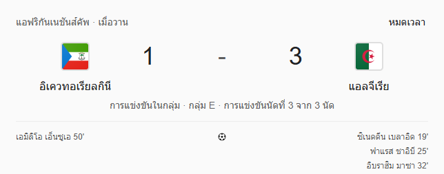 - จบครึ่งแรก: อิเควทอเรียลกินี 0-3 แอลจีเรีย