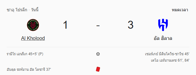 - จบครึ่งแรก: อัล โคลูด 0-1 อัล ฮิลาล