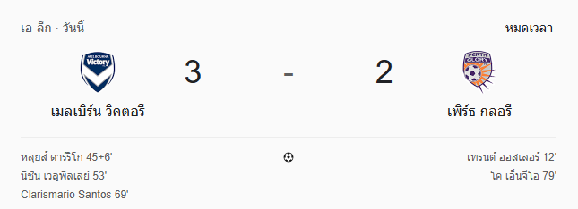 - หมดเวลา: เมลเบิร์น วิคตอรี 3-2 เพิร์ธ กลอรี