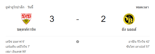 - หมดเวลา: สตุ๊ตการ์ท เฉือนชนะ ยัง บอยส์ 3-2