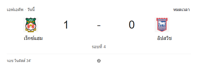 ชัยชนะนัดนี้ถือเป็นอีกหนึ่งผลงานสุดแกร่งของเร็กซ์แฮมในศึก เอฟเอ คัพ อังกฤษ รอบที่ 4 พวกเขาเล่นด้วยวินัย เกมรับเหนียวแน่น และฉวยโอกาสได้อย่างเฉียบคม ขณะที่อิปสวิชแม้จะครองบอลบุกมากขึ้นในช่วงท้าย แต่จังหวะสุดท้ายยังขาดความเด็ดขาด สกอร์ 1-0 อาจดูไม่ขาดลอย แต่รูปเกมเต็มไปด้วยความเข้มข้นทุกจังหวะ สมศักดิ์ศรีบอลถ้วยที่ไม่มีคำว่าประมาท และนี่คืออีกหนึ่งค่ำคืนที่แฟนบอลเจ้าถิ่นจะจดจำไปอีกนาน
