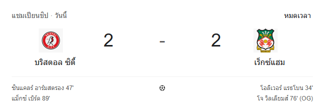 - หมดเวลา: บริสตอล ซิตี้ 2-2 เร็กซ์แฮม