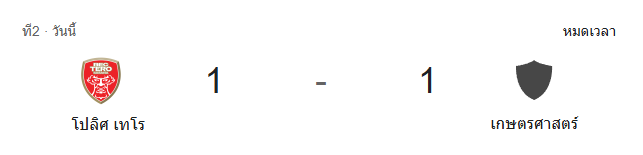 - หมดเวลา: โปลิศ เทโร 1-1 เกษตรศาสตร์ แบ่งแต้มกันไปอย่างดุเดือดจนวินาทีสุดท้าย