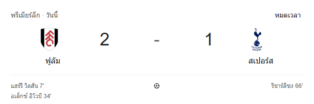 - จบครึ่งแรก: ฟูแล่ม 2-0 สเปอร์ส