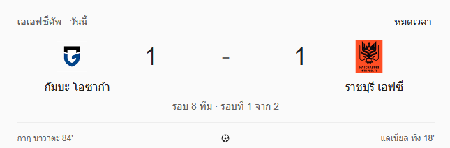 - จบครึ่งแรก: กัมบะ โอซาก้า 0-1 ราชบุรี เอฟซี