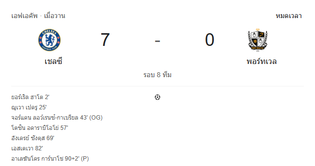 - หมดเวลา: เชลซีถล่ม พอร์ทเวล 7-0 แบบขาดลอย 🎯