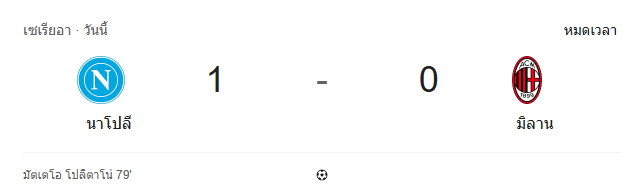 - หมดเวลา: นาโปลี 1-0 เอซี มิลาน 🔥