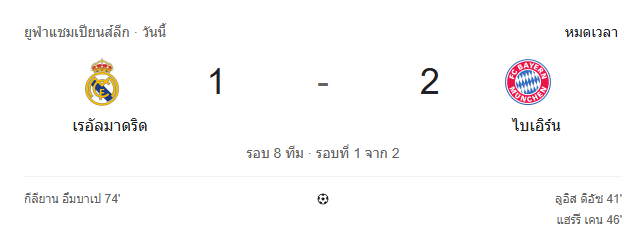 - หมดเวลา: เรอัล มาดริด 1-2 บาเยิร์น มิวนิค 🔥