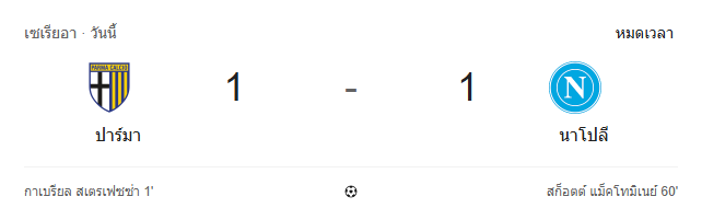- หมดเวลา: ปาร์มา 1-1 นาโปลี