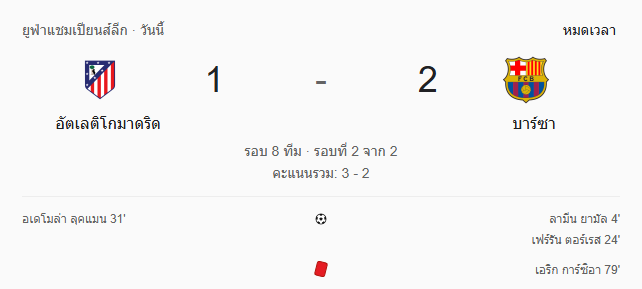 บทสรุปของเกมนี้จึงโคตรชัดเจนและโคตรเจ็บสำหรับฝั่งเจ้าบุญทุ่ม บาร์เซโลน่าบุกมาชนะได้จริง เล่นได้ดุดันจริง ยิงได้เร็วจริง แต่ความเสียหายจากเลกแรกยังหนักเกินเยียวยา ส่วนแอตเลติโก้ มาดริด แม้แพ้ใน 90 นาที แต่พวกเขาเอาตัวรอดได้สำเร็จและคว้าตั๋วเข้ารอบรองชนะเลิศด้วยสกอร์รวม 3-2 แบบนักสู้ตัวจริง เกมนี้ไม่ได้สวยงามทุกจังหวะ แต่มันคือฟุตบอลถ้วยยุโรปที่ตัดสินกันด้วยความนิ่ง ความเขี้ยว และความอดทนล้วน ๆ