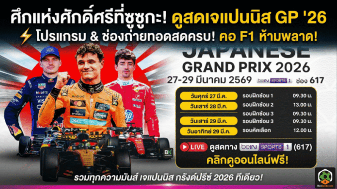 ศึก ฟอร์มูล่าวัน 2026 เดินหน้าเข้าสู่ช่วงต้นฤดูกาลแบบเข้มข้น และสนามที่แฟนความเร็วรอจับตาคือ เจแปนนิส กรังด์ปรีซ์ 2026 ที่ซูซูกะ เซอร์กิต ประเทศญี่ปุ่น สนามระดับตำนานที่ขึ้นชื่อเรื่องความโหดทั้งทางตรง ความเร็ว และโค้งเทคนิคที่วัดฝีมือนักขับกันแบบตรงๆ