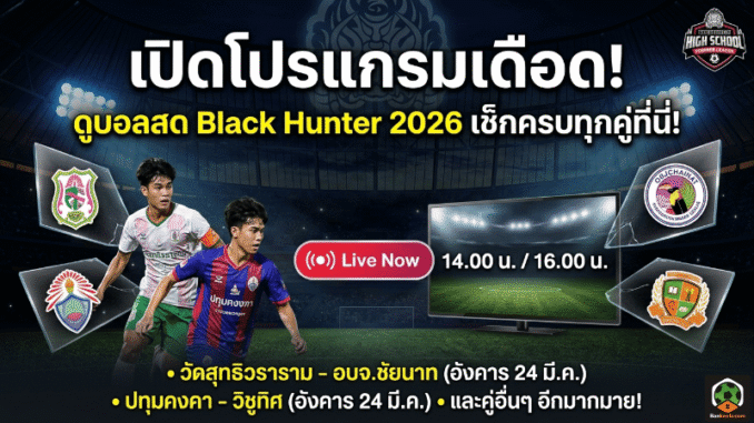 โปรแกรมฟุตบอล Black Hunter High School Premier League 2026 พร้อมช่องทางถ่ายทอดสด