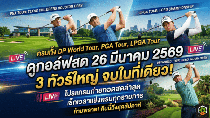 ดูกอล์ฟสด 26 มีนาคม 2569 โปรแกรมถ่ายทอดสดกอล์ฟ 3 ทัวร์ใหญ่ เช็กเวลาแข่งครบทั้ง DP World Tour, PGA Tour และ LPGA Tour
