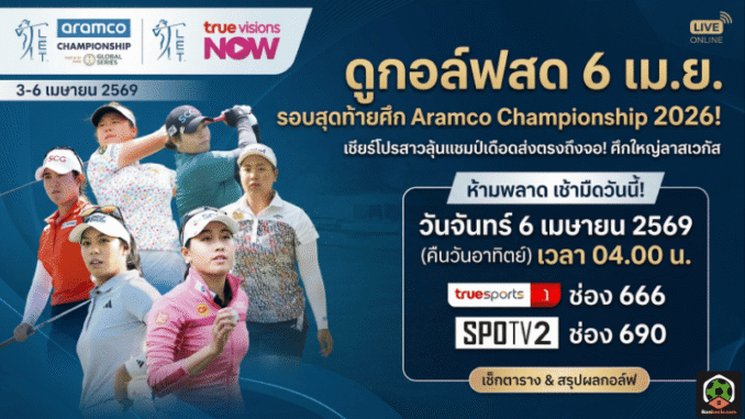 | Aramco Championship 2026 รอบสุดท้าย | วันจันทร์ 6 เม.ย. 2569 เวลา 04.00 น. | TrueSports 1 ช่อง 666 |