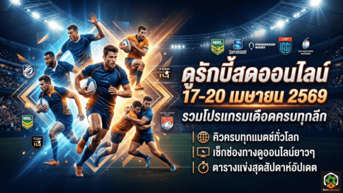 แฟนกีฬาลูกหนังรูปไข่ห้ามกะพริบตา เพราะคิว ดูรักบี้สด ช่วงวันที่ 17-20 เมษายน 2569 อัดแน่นแบบเต็มพิกัด ตั้งแต่ศึก NRL ของออสเตรเลีย, Super Rugby, พรีเมียร์ลีกรักบี้อังกฤษ, URC, Six Nations Women, Top 14 ไปจนถึง Major League Rugby ฝั่งสหรัฐฯ เรียกว่ามีแมตช์ให้ตามกันแทบทุกช่วงเวลา ใครกำลังหาโปรแกรมถ่ายทอดสดพร้อมช่องทางรับชมแบบจบในที่เดียว รอบนี้ บ้านกีฬา จัดให้ครบแบบอ่านง่าย ดูง่าย และพร้อมลุยยาวไปกับคอรักบี้ชาวไทย