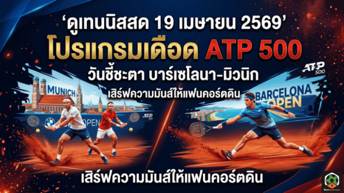 ค่ำคืนนี้แฟน ดูเทนนิสสด มีคิวเฝ้าหน้าจอแบบห้ามกะพริบ เพราะโปรแกรม ATP Tour วันที่ 19 เมษายน 2569 อัดแน่นด้วยสองรายการใหญ่ระดับ ATP 500 ทั้ง BMW Open by Bitpanda ที่เมืองมิวนิก และ Barcelona Open Banc Sabadell ที่ประเทศสเปน ซึ่งทั้งสองทัวร์นาเมนต์แข่งขันอยู่ในช่วงโค้งสุดท้ายของสัปดาห์เดียวกันบนคอร์ตดินระดับสูงของยุโรป