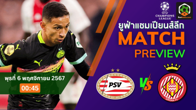 ในคืนวันพุธที่ 6 พฤศจิกายน 2567 เวลา 00.45 น. ศึก ยูฟ่าแชมเปียนส์ลีก 2024 จะเริ่มขึ้นที่สนามของ พีเอสวี ไอนด์โฮเฟ่น ซึ่งเจ้าบ้านกำลังมองหาชัยชนะเพื่อสร้างความมั่นใจในการแข่งขันระดับสูง ส่วนทีมเยือน คิโรน่า จากสเปน ต้องการสร้างเซอร์ไพรส์เพื่อเก็บแต้มในเวทีระดับยุโรป ทีเด็ดบอล มองว่าเกมนี้จะเป็นการดวลที่น่าสนใจ ด้วยสไตล์การเล่นที่แตกต่างกันของทั้งสองทีม