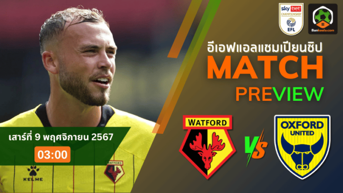 วิเคราะห์บอลสด แชมเปียนชิพ อังกฤษ 2024 วัตฟอร์ด ปะทะ อ็อกซ์ฟอร์ด ยูไนเต็ด วันเสาร์ที่ 9 พฤศจิกายน 2567 เวลา 03.00 น.