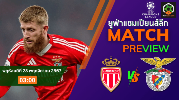 วิเคราะห์บอลสด ยูฟ่าแชมเปียนส์ลีก 2024: โมนาโก พบ เบนฟิก้า วันพฤหัสบดีที่ 28 พฤศจิกายน 2567 เวลา 03.00 น.