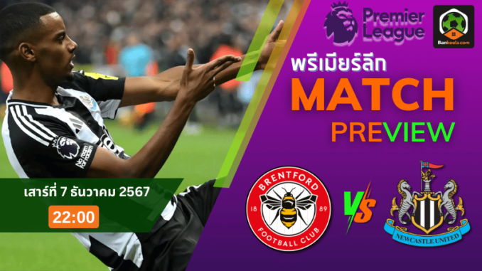 วิเคราะห์บอลสด พรีเมียร์ลีก 2024 เบรนท์ฟอร์ด พบ นิวคาสเซิ่ล ยูไนเต็ด ค่ำคืนวันเสาร์ที่ 7 ธันวาคม 2567 เวลา 22.00 น.