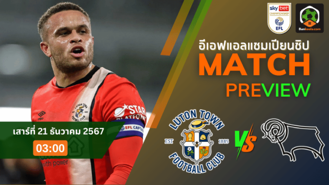 วิเคราะห์บอลสด ศึกเดือดอีเอฟแอลแชมเปียนชิป 2024 ลูตัน ทาวน์ ปะทะ ดาร์บี้ เค้าท์ตี้ พร้อมชิงแต้มสำคัญ