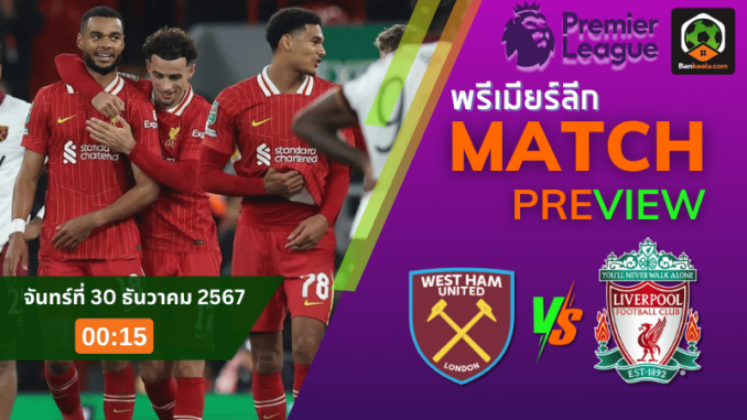 ดูบอลสดพรีเมียร์ลีก 2024 ถ่ายทอดสด เวสต์แฮมยูไนเต็ด พบ ลิเวอร์พูล 29/12/67 – บ้านกีฬา