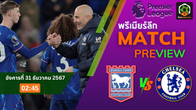การแข่งขันพรีเมียร์ลีก 2024 คืนวันอังคารที่ 31 ธันวาคม เวลา 02.45 น. จะเป็นการดวลเดือดระหว่าง อิปสวิช ทาวน์ ทีมท้ายตารางที่ต้องการแต้มเพื่อหนีโซนอันตราย พบกับ เชลซี ที่กำลังมองหาชัยชนะเพื่อกลับมาสู่เส้นทางลุ้นแชมป์อีกครั้ง คอบอลตัวจริงห้ามพลาด ตรวจสอบ ตารางบอลวันนี้ และร่วมติดตามแมตช์สุดมันส์นี้ไปพร้อมกัน!