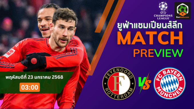 การแข่งขัน ยูฟ่า แชมเปียนส์ลีก 2024 กำลังเข้าสู่ช่วงที่เข้มข้นขึ้นเรื่อยๆ และหนึ่งในเกมที่แฟนบอลทั่วโลกจับตามองคือการพบกันระหว่าง เฟเยนูร์ด ร็อตเธอร์ดัม จากเนเธอร์แลนด์ เปิดรังต้อนรับการมาเยือนของ บาเยิร์น มิวนิค ยักษ์ใหญ่จากเยอรมนี โดยเกมนี้จะลงสนามกันในคืนวันพฤหัสบดีที่ 23 มกราคม 2568 เวลา 03.00 น. ตามเวลาประเทศไทย