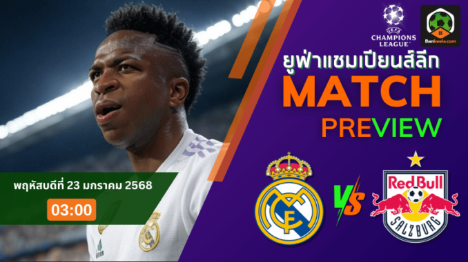 การแข่งขัน ยูฟ่า แชมเปียนส์ลีก 2024 กำลังเดินหน้าเข้าสู่ช่วงเวลาสำคัญ และหนึ่งในแมตช์ที่น่าจับตามองคืนนี้คือการเผชิญหน้ากันระหว่าง เรอัล มาดริด ทีมยักษ์ใหญ่จากสเปน เปิดรังต้อนรับ เร้ดบูลล์ ซัลซ์บวร์ก สโมสรแกร่งจากออสเตรีย เกมนี้มีผลต่อการลุ้นเข้ารอบอย่างมาก โดยทั้งสองทีมต่างต้องการ 3 คะแนนเพื่อตำแหน่งที่ดีกว่าในรอบต่อไป
