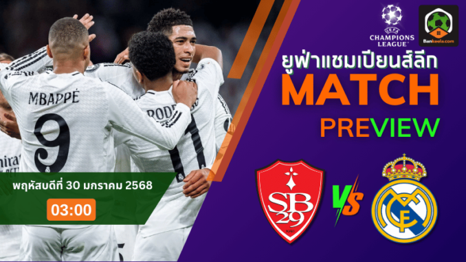 ดูบอลสดยูฟ่าแชมเปียนส์ลีก 2024 ถ่ายทอดสด แบรสต์ พบ เรอัล มาดริด 29/1/68 – บ้านกีฬา