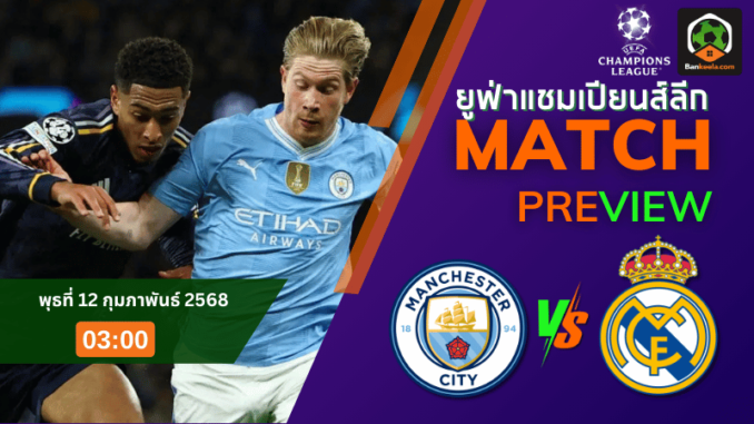 คืนวันพุธที่ 12 กุมภาพันธ์ 2568 เวลา 03.00 น. เวที ยูฟ่า แชมเปียนส์ลีก 2024 กลับมาระอุอีกครั้ง กับการพบกันของสองมหาอำนาจลูกหนังยุโรป แมนเชสเตอร์ ซิตี้ เปิดสนาม เอติฮัด สเตเดี้ยม ต้อนรับการมาเยือนของ เรอัล มาดริด ศึกนี้เป็นมากกว่าเกมธรรมดา เพราะทั้งสองทีมต่างมีประวัติการดวลกันสุดดุเดือดในช่วงไม่กี่ปีที่ผ่านมา แน่นอนว่าแฟนบอลทั่วโลกต้องจับตามอง และ ตารางบอลวันนี้ ต้องให้ความสนใจไปที่แมตช์นี้อย่างแน่นอน