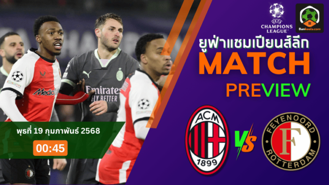 วิเคราะห์บอลวันนี้ ศึกแห่งศักดิ์ศรี! เอซี มิลาน เปิดรังฟัดเดือด เฟเยนูร์ด ลุ้นเข้ารอบยูฟ่า แชมเปียนส์ ลีก