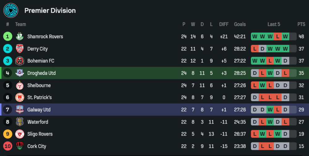 ค่ำคืนวันเสาร์นี้แฟนบอลไอร์แลนด์เตรียมตัวลุ้นกันแบบขอบจอ! ศึก ไอร์แลนด์ พรีเมียร์ลีก ระหว่าง ดร็อกเฮด้า ยูไนเต็ด ทีมอันดับ 4 เปิดรัง ซุลลิแวน & แลมเบ้ ปาร์ค ต้อนรับการมาเยือนของ กัลเวย์ ยูไนเต็ด ทีมอันดับ 7 เวลา 01:45 น. ตามเวลาไทย โดยราคาบอลวันนี้ เปิดมาที่เสมอ ดร็อกเฮด้า ถือเป็นเกมที่สูสีแบบสุดๆ และนับเป็นแมตช์หนึ่งใน ตารางบอลวันนี้ ที่แฟนบอลห้ามกระพริบตา เพราะเดิมพันครั้งนี้ไม่ใช่แค่สามแต้ม แต่ยังเป็นการวัดความคมของสองทีมที่พร้อมลุยเต็มร้อย