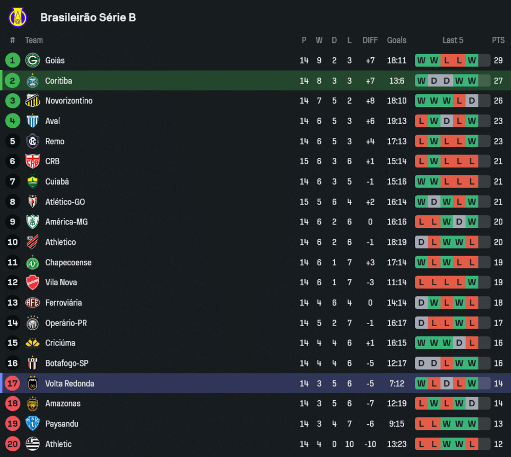 โวลตา เรดอนดา ของกุนซือ โรแชริโอ กอร์เรอา ฟอร์มยังลุ่มๆ ดอนๆ แม้จะเพิ่งชนะเกมในบ้านได้แต่เกมเยือนยังย่ำแย่ ข้อดีคือไม่มีปัญหาผู้เล่นบาดเจ็บหรือติดโทษแบน โดยพร้อมจัดชุดใหญ่ในระบบ 4-2-3-1 นำโดยตัวรุก รา ดา ซิลวา เปสซานญา, อิตาโล และปิแอร์ ทำเกมรุกอยู่ด้านหลังหัวหอกตัวเป้า มาร์กอส วินิซิอุส กัสปาร์ (เอ็มวี)