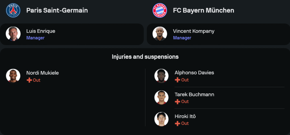 ลูกทีมของ หลุยส์ เอนริเก้ ยังคงโชว์ฟอร์มได้แข็งแกร่งในรอบที่ผ่านมา ไล่ถล่มอินเตอร์ ไมอามี่ไปถึง 4-0 เกมนี้ข่าวดีคือ อุสมาน เดมเบเล่ สลัดอาการบาดเจ็บกลับมาพร้อมลงสนามเป็นตัวจริงอีกครั้ง เคียงข้างด้วยสองตัวรุกสุดจี๊ด เดซีเร่ ดูเอ้ และ ควิช่า ควารัตสเคเลีย ในแผน 4-3-3 โดยมี จานลุยจิ ดอนนารุมม่า คอยเฝ้าเสาให้มั่นใจในแนวรับเช่นเดิม