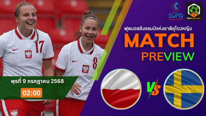 ศึกฟุตบอลหญิงชิงแชมป์แห่งชาติยุโรป 2025 เดือดแน่ค่ำคืนนี้ เมื่อ โปแลนด์ (ญ) เตรียมเผชิญหน้ากับขาใหญ่ของยุโรปอย่าง สวีเดน (ญ) ในเกมนัดที่สองของรอบแบ่งกลุ่ม คืนวันพุธที่ 9 กรกฎาคม 2568 เวลา 02:00 น. ภายใต้แรงกดดันที่โปแลนด์ต้องการแต้มเพื่อรักษาความหวังเข้ารอบ ขณะที่สวีเดนต้องการชัยชนะเพื่อการันตีการผ่านไปเล่นรอบน็อกเอาต์ต่อไป ราคาบอลวันนี้ ยกให้สวีเดนเป็นต่อเต็มตัว แฟนบอลที่กำลังเช็ค ตารางบอลวันนี้ ไม่ควรพลาดเกมสำคัญแมตช์นี้ เพราะมันคือเกมเดิมพันชีวิตของทั้งสองทีม