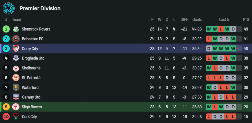 ค่ำคืนวันอาทิตย์ที่ 13 กรกฎาคมนี้ แฟนบอล ไอร์แลนด์ พรีเมียร์ ลีก เตรียมระเบิดอารมณ์ไปกับคู่มันส์ประจำสัปดาห์ สลิโก โรเวอร์ส ทีมอันดับ 9 เปิดรัง เดอะ โชว์กราวส์ รับมือความดุดันของ เดอร์รี่ ซิตี้ รองจ่าฝูงที่กำลังไล่ล่าจ่าฝูงเต็มตัว เกมนี้ฟาดแข้งในเวลา 01:45 น. ตามเวลาประเทศไทย โดยบ่อนเปิดเรตราคาให้ทีมเยือนต่อ 0.75 ลูก เรียกได้ว่าคู่ดึกนี้ใน ตารางบอลวันนี้ เป็นอีกแมตช์ที่น่าลงทุนลุ้นมันส์สุดๆ