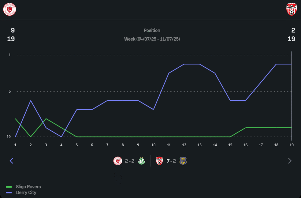 เจอกันเมื่อไหร่ เดอร์รี่ ซิตี้ มักทำได้ดีกว่าในช่วงหลัง เมื่อพวกเขาคว้าชัยถึง 3 นัดติดในทุกรายการ ยิงไปถึง 7 ประตูโดยไม่เสียแม้แต่ลูกเดียวให้สลิโก โรเวอร์ส ซึ่งย้อนดูสถิติ 10 เกมล่าสุด สลิโกชนะได้เพียง 3 นัด เสมอ 3 และเป็นเดอร์รี่ที่คว้าชัยถึง 4 หน ฟอร์มการพบกันแบบนี้ทำให้บรรดาคอบอลมองว่า ทีเด็ดบอล คู่นี้ยังน่าอยู่ฝั่งรองจ่าฝูงมากกว่า