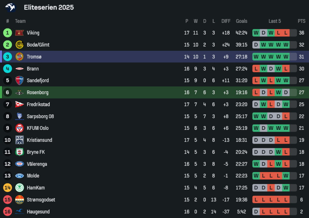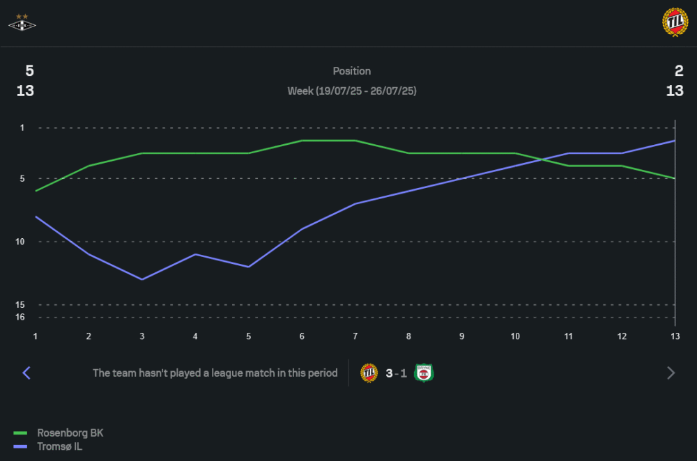 ทรอมโซ่: นี่คือทีมที่กำลังมาแรงสุดในลีกตอนนี้ ชนะรวด 5 เกมหลังในลีก ยิงได้ 11 เสียแค่ 4 กำลังมั่นใจเต็มเปี่ยม ทั้งเกมเหย้าและเยือนพวกเขาเดินหน้าล่าชัยชนะแบบไม่กลัวหน้าอินทร์หน้าพรหม เกมรุกเฉียบคม เกมรับแข็งแกร่ง ทำให้ตอนนี้ทะยานขึ้นมานั่งอันดับ 2 แบบสมศักดิ์ศรี