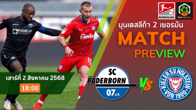 ในศึก บุนเดสลีก้า 2 เยอรมัน ค่ำคืนวันเสาร์ที่ 2 สิงหาคม 2568 นี้ ตารางบอลวันนี้ จับตาไปที่สนาม โฮม ดีลักซ์ อารีน่า เมื่อเจ้าถิ่น เอสซี พาเดอร์บอร์น 07 เตรียมเปิดบ้านต้อนรับการมาเยือนของ โฮลสไตน์ เคียล ในเกมที่เดิมพันด้วยศักดิ์ศรีทีมกลางตารางที่พร้อมจะขยับขึ้นไปท้าชิงหัวตารางต่อในฤดูกาลนี้ โดยราคาบอลเปิดมาแบบสูสีให้พาเดอร์บอร์นเป็นฝ่ายต่อ “ปป.” แสดงให้เห็นถึงความไม่แน่นอนของคู่นี้แบบเต็มรูปแบบ!