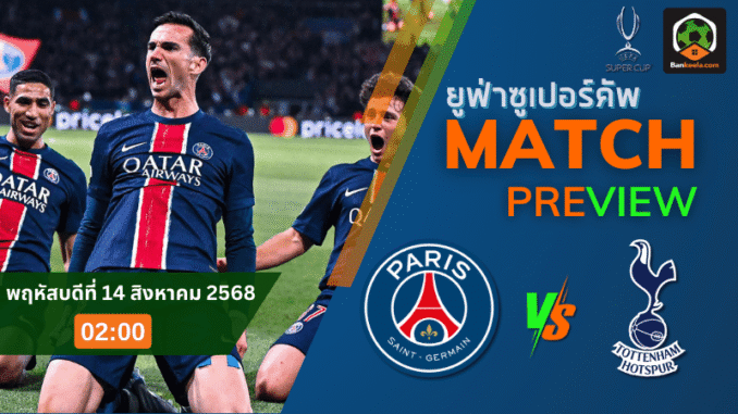 ค่ำคืนวันพฤหัสบดีที่ 14 สิงหาคม 2568 เวลา 02.00 น. แฟนบอลทั่วโลกเตรียมระเบิดอารมณ์ความมันส์ในศึก ยูฟ่าซูเปอร์คัพ ที่สนามเม็ทไลฟ์ สเตเดี้ยม เมื่อ ปารีส แซงต์ แชร์กแมง แชมป์ยูฟ่าแชมเปียนส์ลีก จากฝรั่งเศส จะฟาดแข้งกับ ท็อตแน่ม ฮ็อทสเปอร์ แชมป์ยูโรป้าลีกจากเกาะอังกฤษ เกมนี้บ่อนเปิดราคาบอลให้เปแอสเชต่อ 1.25-10 มองแล้วเป็นอีกหนึ่งแมตช์ใหญ่ที่คอบอลต้องจดลงในสมุด ตารางบอลวันนี้ แบบห้ามพลาด เพราะนี่ไม่ใช่แค่เกมอุ่นเครื่อง แต่เป็นการวัดศักดิ์ศรีแชมป์ยุโรปตัวจริง