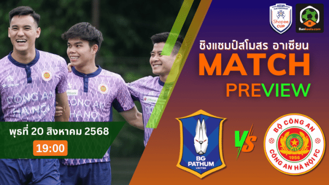 ศึกใหญ่ใน ชิงแชมป์สโมสรอาเซียน กำลังจะระเบิดความมันส์ขึ้นในวันพุธที่ 20 สิงหาคม 2568 เวลา 19:00 น. เมื่อ บีจี ปทุม ยูไนเต็ด ทีมดังจากไทย เปิดสนามทรู บีจี สเตเดี้ยม รับการมาเยือนของ กง อัน ฮานอย ยักษ์ใหญ่จากเวียดนาม เกมนี้ถือเป็นการเจอกันครั้งแรกอย่างเป็นทางการของทั้งสองทีม และที่สำคัญราคาบอลเปิดมาแบบสุดสูสี “เสมอ” ทำให้แมตช์นี้กลายเป็นเกมที่น่าติดตามสุด ๆ ใน ตารางบอลวันนี้ เพราะไม่มีใครเหนือกว่าใครบนกระดาษ ทุกอย่างต้องตัดสินกันในสนามจริงเท่านั้น