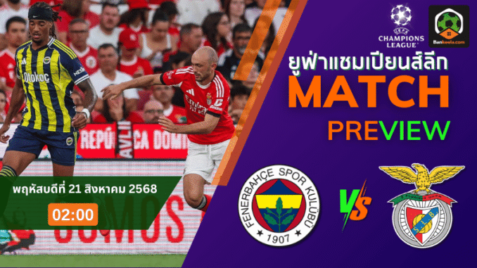 ค่ำคืนวันพฤหัสบดีที่ 21 สิงหาคม 2568 เวลา 02:00 น. ศึก ยูฟ่า แชมเปียนส์ลีก รอบเพลย์ออฟ เลกแรก เตรียมระอุที่สนาม อุลเคอร์ สต๊าดยูมู เฟเนร์บาห์เช่ ซูครู ซาราโคกลู สปอร์ คอมเพล็คซี่ เมื่อ เฟเนร์บาห์เช่ ทีมดังจากตุรกี เปิดรังดวลเดือดกับ เบนฟิก้า ขาใหญ่จากโปรตุเกส โดยราคาบอลล่าสุดเปิดมาแบบ “เสมอ” ทำให้แมตช์นี้จัดว่าสูสีสุด ๆ และเป็นหนึ่งในคู่เอกของ ตารางบอลวันนี้ ที่แฟนบอลทั่วโลกห้ามพลาด