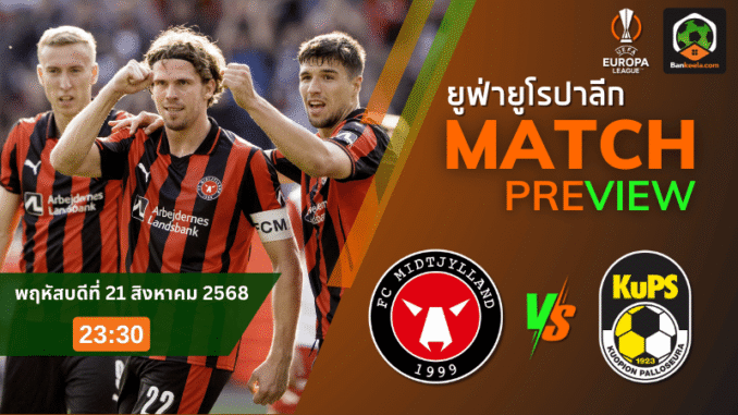 ศึกยูฟ่ายูโรปาลีก เพลย์ออฟนัดแรก คืนวันพฤหัสบดีที่ 21 สิงหาคม 2568 เวลา 23:30 น. แฟนบอลจับตามองที่สนาม เอ็มซีเอช อารีน่า เมื่อเจ้าถิ่น มิดทิลแลนด์ ทีมแกร่งจากเดนมาร์ก เตรียมเปิดบ้านรับการมาเยือนของ คูพีเอส ตัวแทนจากฟินแลนด์ เกมนี้ถือเป็นบทพิสูจน์สำคัญว่าทีมไหนจะก้าวไปยืนหนึ่งในรอบต่อไป ราคาบอลวันนี้ เปิดมาให้ มิดทิลแลนด์ ต่อ 2 ลูก (-5) เรียกได้ว่าแรงกดดันตกอยู่ที่เจ้าถิ่นเต็มๆ แฟนบอลและสายเดิมพันต้องไม่พลาดเพราะมีทั้งดีกรี ความเข้มข้น และความมันส์ครบเครื่องตามสไตล์เกมยุโรป ที่ถูกบันทึกไว้ใน ตารางบอลวันนี้