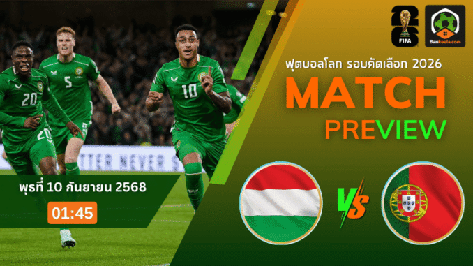 บิ๊กแมตช์ศึก คัดบอลโลก 2026 โซนยุโรป กลุ่ม F ระเบิดความมันส์ในคืนวันพุธที่ 10 กันยายน 2568 เวลา 01.45 น. ที่สนามปุสกัส อารีน่า เมื่อ ฮังการี ทีมอันดับ 2 ของกลุ่ม เปิดบ้านรับมือ โปรตุเกส จ่าฝูงที่ฟอร์มร้อนแรงสุดขีด เกมนี้มีเดิมพันมหาศาล เพราะแต้มเดียวอาจเปลี่ยนชะตาการเข้ารอบของทั้งสองทีม สำหรับคอบอลที่กำลังมองหา ตารางบอลวันนี้ ต้องบอกเลยว่านี่คือคู่ที่ไม่ควรพลาดเด็ดขาด