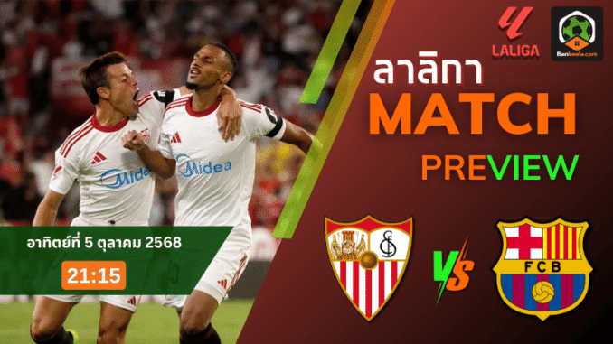 ศึกใหญ่ลาลีกา สเปน คืนวันอาทิตย์ที่ 5 ตุลาคม 2568 เวลา 21:15 น. ที่ราม่อน ซานเชซ ปิซฆวน เจ้าถิ่นเซบีย่าอันดับ 9 เปิดบ้านต้อนรับจ่าฝูงบาร์เซโลน่า เกมนี้เรตเปิดที่ บาร์ซ่า ต่อ 1.25-10 มาตรฐานและความคมชัดยังเอียงไปทางอาคันตุกะ แต่ใครที่ติดตาม ตารางบอลวันนี้ จะรู้ดีว่าดินแดนแอนดาลูเซียไม่เคยเป็นทริปง่ายของทีมใหญ่ โดยเฉพาะเกมรับแพ็คแน่นกับจังหวะสวนที่เจ็บลึกของเซบีย่า คืนนี้ความกดดันและเสียงเชียร์จะอัดแน่นทุกอณูหญ้า
