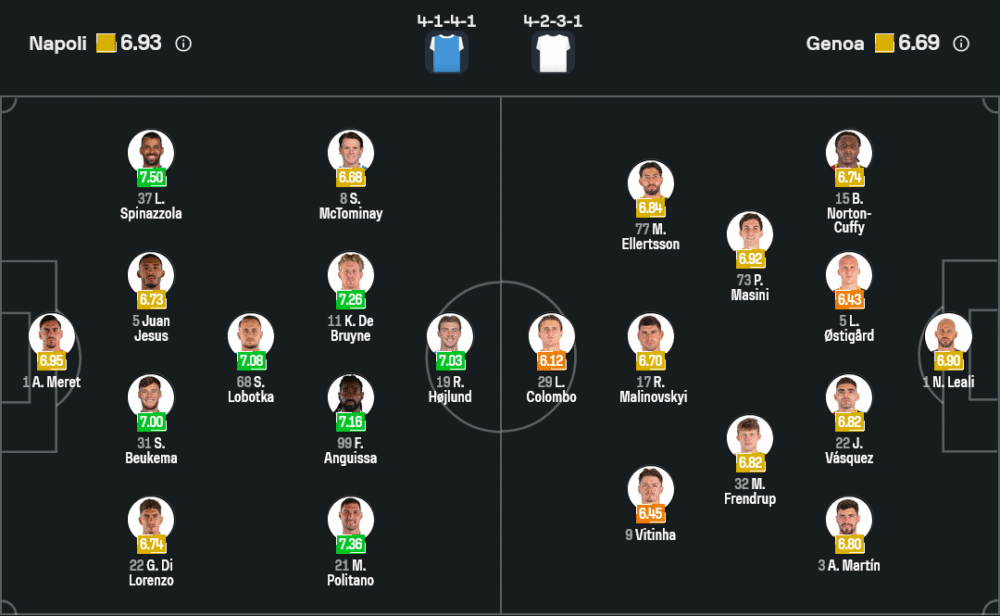จากมุม วิเคราะห์บอล เชิงแท็กติก การวางเกมรับลึกของวิเอร่าอาจช่วยชะลอความแรงของเจ้าบ้านได้ช่วงหนึ่ง แต่เมื่อนาโปลีเร่งสปีดกดเพรสซิ่งพร้อมกันสามมิติ โอกาสเกิดความผิดพลาดในแดนหลังของเจนัวสูงขึ้นเรื่อยๆ โดยเฉพาะจังหวะผ่านบอลเสี่ยงในพื้นที่ครึ่งช่องซ้ายที่มาลินอฟสกี้มักถอยมารับบอล ถ้าโดนตัดได้ นาโปลีจะสวนกลับเร็วเป็นสายฟ้า ชี้ขาดด้วยการคอมบิเนชันหนึ่งสองของเดอ บรอยน์และฮอยลุนด์